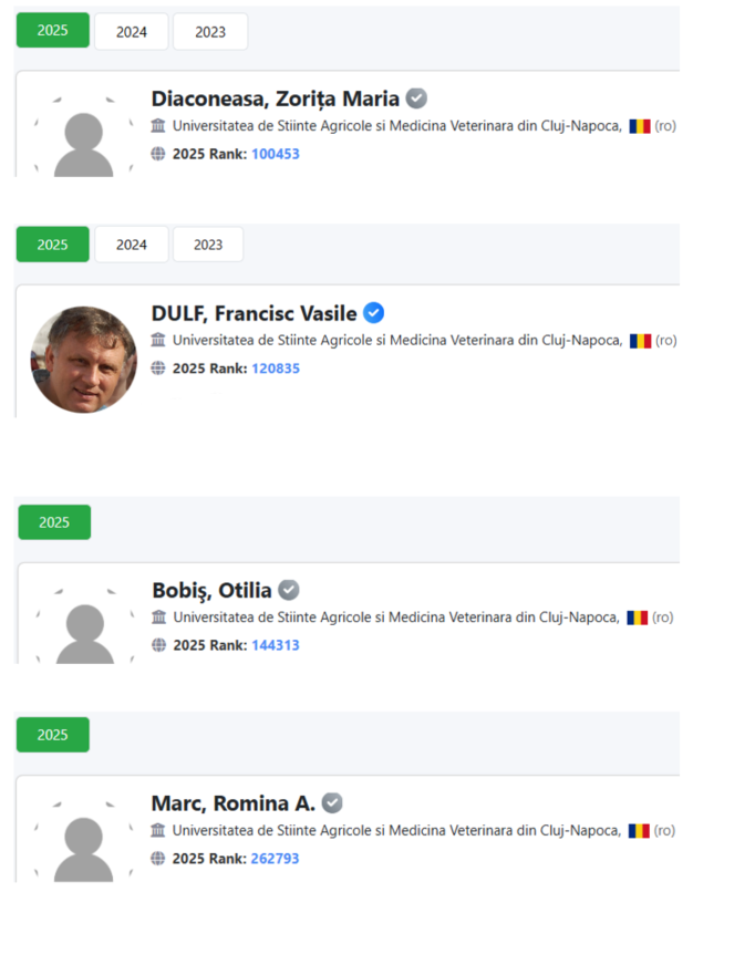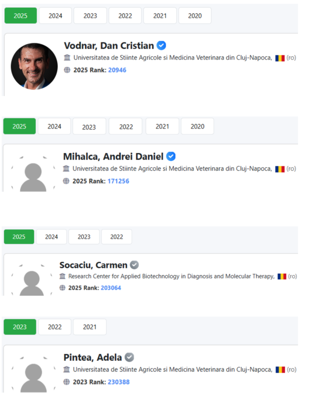 Ierarhizarea este realizată pe baza informațiilor furnizate de baza de date +SCOPUS și clasifică oamenii de știință cu cele mai multe citări atât pentru anul 2024, cât și pentru întreaga carieră.